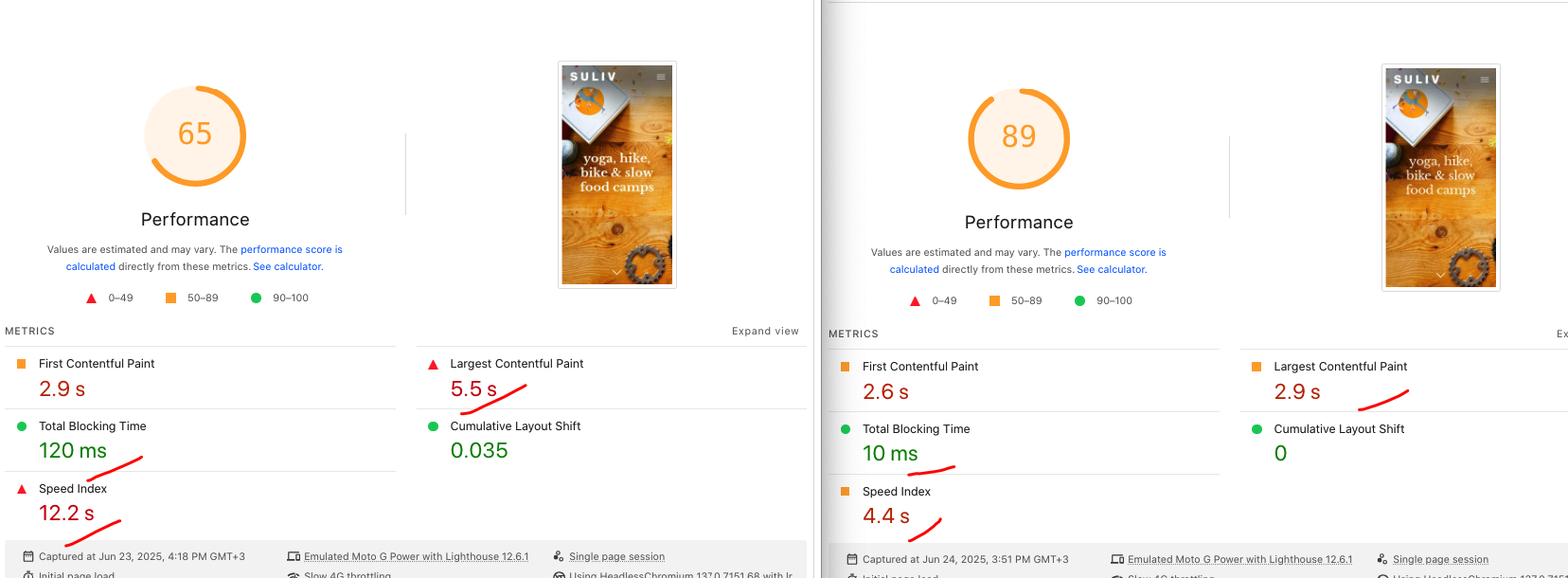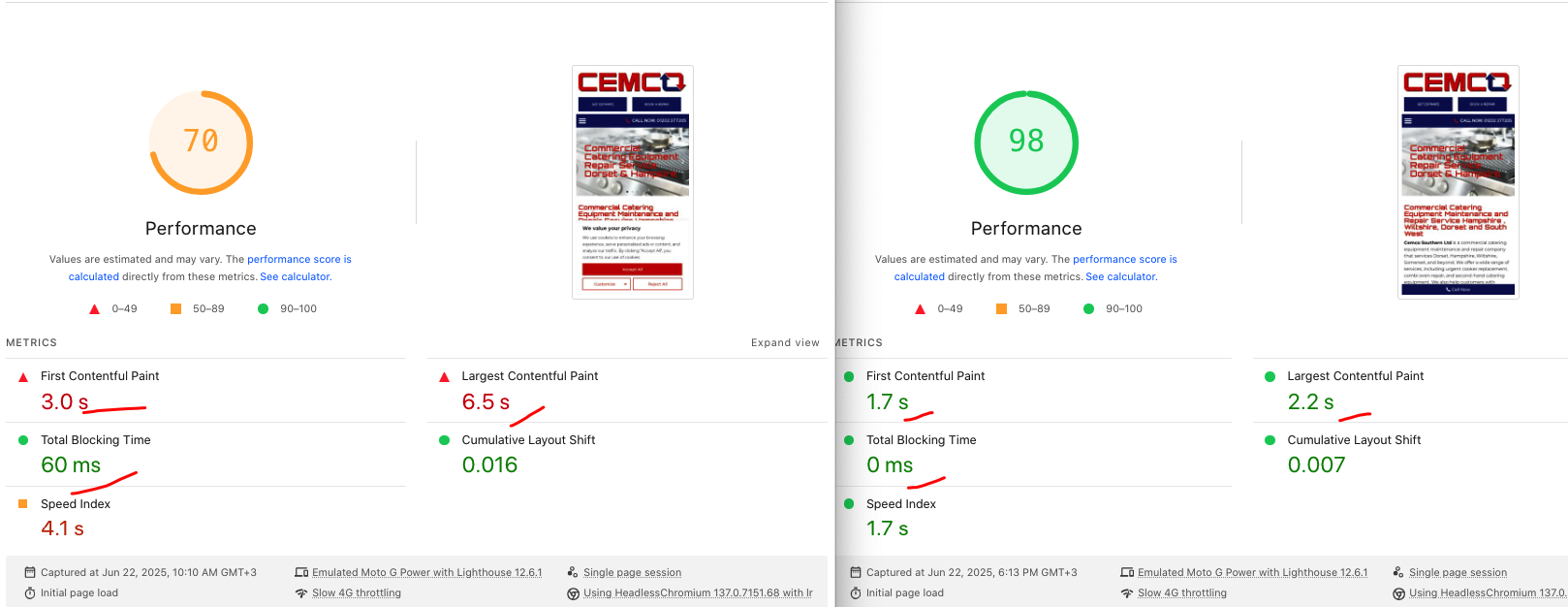 I focus on real performance and Core Web Vitals improvements. Scores usually improve significantly, but the primary goal is user experience and stability not chasing 100/100.